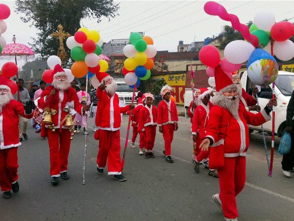 ಶಾಲಾ ಮಕ್ಕಳು ಕ್ರಿಸ್ಮಸ್ ತಾತಾನ ದಿರಿಸಿನಲ್ಲಿ ಮೆರವಣಿಗೆ ನಡೆಸಿದ್ದಾರೆ