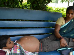 ಹೊಟ್ಟೆ ತೀವ್ರವಾಗಿ ಊದಿಕೊಂಡಿದೆ. ಸರಿಯಾಗಿ ಕೂಡುವುದಕ್ಕೆ ಮತ್ತು ನಡೆಯುವುದಕ್ಕೆ ಸಾಧ್ಯವಾಗುತ್ತಿಲ್ಲ. ಬಾಲಕ ಮಲಗಿದಲ್ಲಿಯೇ ಮಲಗಿರುತ್ತಾನೆ. ಅಪೋಲೋ ಅಥವಾ ನಾರಾಯಣ ಹೃದಯಾಲಯದಲ್ಲಿ ಒಳ ರೋಗಿಯಾಗಿ ಚಿಕಿತ್ಸೆ ಕೊಡಿಸಬೇಕಾದರೆ ಬಿಪಿಎಲ್ ಕಾರ್ಡ್ ನ ಅಗತ್ಯವಿದೆ ಅಂತಾರೆ ಮರೆಪ್ಪಾ.