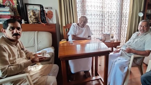 ಬೆಂಗಳೂರು, ನವೆಂಬರ್ 16; ಬಿಜೆಪಿನ ನಾಯಕ, ಕಾನೂನು ಸಚಿವ ಜೆ. ಸಿ. ಮಾಧುಸ್ವಾಮಿ ಜೆಡಿಎಸ್ ವರಿಷ್ಠ, ಮಾಜಿ ಪ್ರಧಾನಿ ಎಚ್. ಡಿ. ದೇವೇಗೌಡ ಭೇಟಿಯಾದರು. ಈ ಸಂದರ್ಭದಲ್ಲಿ ಮಾಜಿ ಸಚಿವ ಸೊಗಡು ಶಿವಣ್ಣ ಸಹ ಜೊತೆಗಿದ್ದರು.
