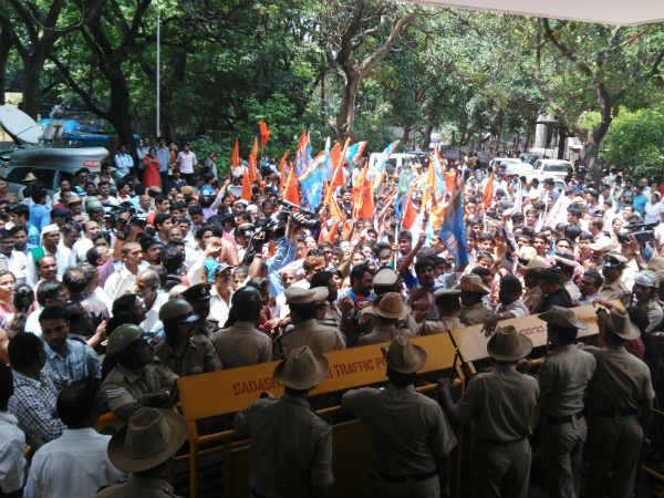 ಅತ್ತ ಪಿಯು ಬೋರ್ಡ್ ಒಳಕ್ಕೆ ತೆರಳಿದ ಕುಮಾರಸ್ವಾಮಿ ಉತ್ತರ ಪತ್ರಿಕೆಗಳ ಮರಿಪರಿಶೀಲನೆಯಲ್ಲಿ ತೊಡಗಿದ್ದರೆ, ಇತ್ತ ಪ್ರತಿಭಟನೆ ಕಾವು ಏರತೊಡಗಿತ್ತು. ಒಮ್ಮೆ ಪಿಯುನ ಬೋರ್ಡ್ ಒಳಕ್ಕೆ ನುಗ್ಗಲು ಯತ್ನಿಸಿದ್ದರು. ಆದರೆ ಪೊಲೀಸರು ಪ್ರತಿಭಟನಾಕಾರರನ್ನು ತಡೆದರು.