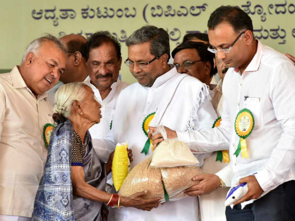 ಕಡಿಮೆ ಬೆಲೆಗೆ ಅಕ್ಕಿ ಪಡೆಯುತ್ತಿದ್ದ ಬಿಪಿಎಲ್ ಪಡಿತರರು ಇನ್ನು ಮುಂದೆ ಉಚಿತವಾಗಿ ಅಕ್ಕಿ ಪಡೆಯಲಿದ್ದಾರೆ. ವಿಧಾನಸೌಧದ ಮುಂಭಾಗ ಹಮ್ಮಿಕೊಂಡಿದ್ದ ಕಾರ್ಯಕ್ರಮದಲ್ಲಿ ಬಿಪಿಎಲ್, ಅಂತ್ಯೋದಯ ಫಲಾನುಭವಿಗಳಿಗೆ ಉಚಿತ ಅಕ್ಕಿ, ರಿಯಾಯಿತಿ ದರದಲ್ಲಿ ತಾಳೆಎಣ್ಣೆ ಮತ್ತು ಅಯೋಡಿನ್ ಉಪ್ಪು ವಿತರಿಸುವ ಮೂಲಕ ಮುಖ್ಯಮಂತ್ರಿ ಸಿದ್ದರಾಮಯ್ಯ ಯೋಜನೆಗೆ ಚಾಲನೆ ನೀಡಿದರು.[ಪಡಿತರದೊಂದಿಗೆ ಸಿಗಲಿದೆ ಬೇಳೆ, ತಾಳೆ ಎಣ್ಣೆ, ಉಪ್ಪು]
