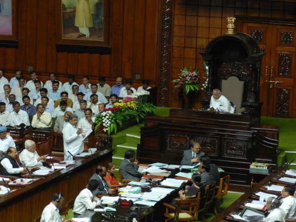 ಉತ್ತರದಿಂದ ತೃಪ್ತರಾಗದ ಬಿಜೆಪಿ ಮತ್ತು ಜೆಡಿಎಸ್ ಶಾಸಕರು ಸದನದ ಬಾವಿಗಿಳಿದು ಸರ್ಕಾರದ ವಿರುದ್ಧ ಘೋಷಣೆ ಕೂಗಲಾರಂಭಿಸಿದರು. ಈ ಸಂದರ್ಭದಲ್ಲಿ ಆಡಳಿತ ಮತ್ತು ಪ್ರತಿಪಕ್ಷದ ಸದಸ್ಯರ ನಡುವೆ ಮಾತಿನ ಚಕಮಕಿ ನಡೆದು ಸದನದಲ್ಲಿ ಗೊಂದಲ ಉಂಟಾಯಿತು. ಆದ್ದರಿಂದ ಸ್ಪೀಕರ್ ಕಾಗೋಡು ತಿಮ್ಮಪ್ಪ ಸದನವನ್ನು ಕೆಲಕಾಲ ಮುಂದೂಡಿದರು. [ಅಧಿವೇಶನದ ಮೊದಲ ದಿನದ ಮುಖ್ಯಾಂಶಗಳು]