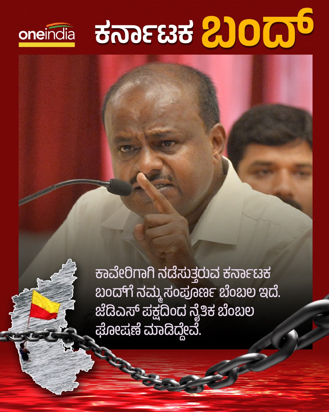 ಕಾವೇರಿಗಾಗಿ ನಡೆಸುತ್ತರುವ ಕರ್ನಾಟಕ ಬಂದ್ಗೆ ನಮ್ಮ ಸಂಪೂರ್ಣ ಬೆಂಬಲ ಇದೆ.ಜೆಡಿಎಸ್ ಪಕ್ಷದಿಂದ ನೈತಿಕ ಬೆಂಬಲ ಘೋಷಣೆ ಮಾಡಿದ್ದೇವೆ.