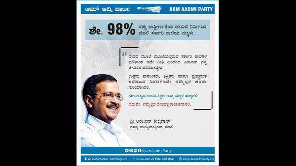 ಕರ್ನಾಟಕದಲ್ಲಿಯೂ ಸಹ ಇದೇ ರೀತಿ ಸರ್ಕಾರಿ ಶಾಲೆಯ ಮಕ್ಕಳು ಸಾಧನೆ ಮಾಡಬೇಕು ಹಾಗೂ ದೆಹಲಿ ಮಾದರಿಯ ಶಿಕ್ಷಣವನ್ನು ನೀಡಲು ಸರ್ಕಾರ ಮುಂದಾಗಬೇಕು ಎಂಬುದು ನಮ್ಮ ಮನವಿ ಎಂದು ಆಮ್ ಆದ್ಮಿ ಪಕ್ಷದ ಬೆಂಗಳೂರು ಘಟಕದ ಅಧ್ಯಕ್ಷ ಮೋಹನ್ ದಾಸರಿ ಹೇಳಿದ್ದಾರೆ.