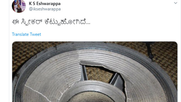 ಶಿವಮೊಗ್ಗ ನಗರ ಕ್ಷೇತ್ರದ ಬಿಜೆಪಿ ಶಾಸಕ ಕೆ. ಎಸ್. ಈಶ್ವರಪ್ಪ, 'ಈ ಸ್ಪೀಕರ್ ಕೆಟ್ಟುಹೋಗಿದೆ...' ಎಂದು ಟ್ವೀಟ್ ಮೂಲಕ ತಮ್ಮ ಆಕ್ರೋಶ ಹೊರಹಾಕಿದ್ದಾರೆ. ಸ್ಪೀಕರ್ ರಮೇಶ್ ಕುಮಾರ್ ಹೆಸರು ಉಲ್ಲೇಖ ಮಾಡದೆ ವ್ಯಂಗ್ಯವಾಡಿದ್ದಾರೆ.