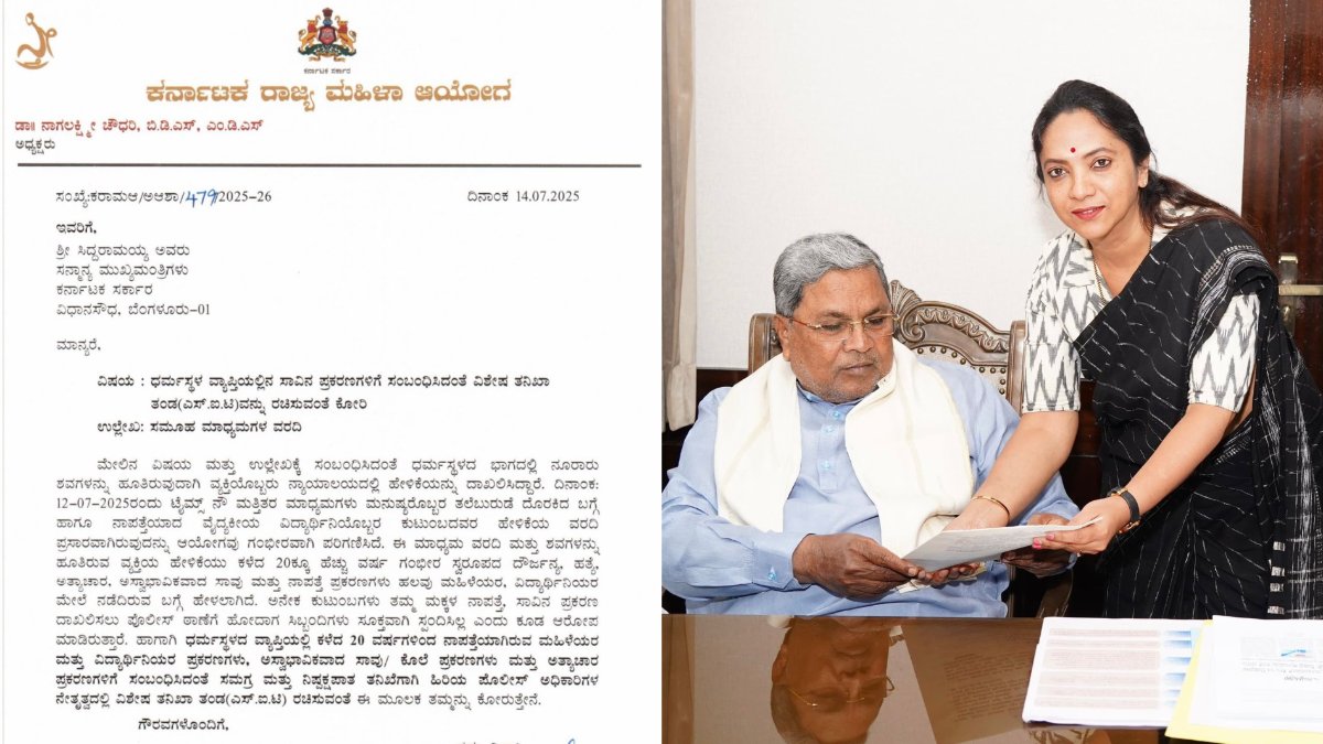 ಧರ್ಮಸ್ಥಳ ಕೇಸ್ಗೆ ಮಹಿಳಾ ಆಯೋಗ ಎಂಟ್ರಿ, SIT ತನಿಖೆಗೆ ಆಗ್ರಹಿಸಿ ಸಿಎಂಗೆ ಪತ್ರ