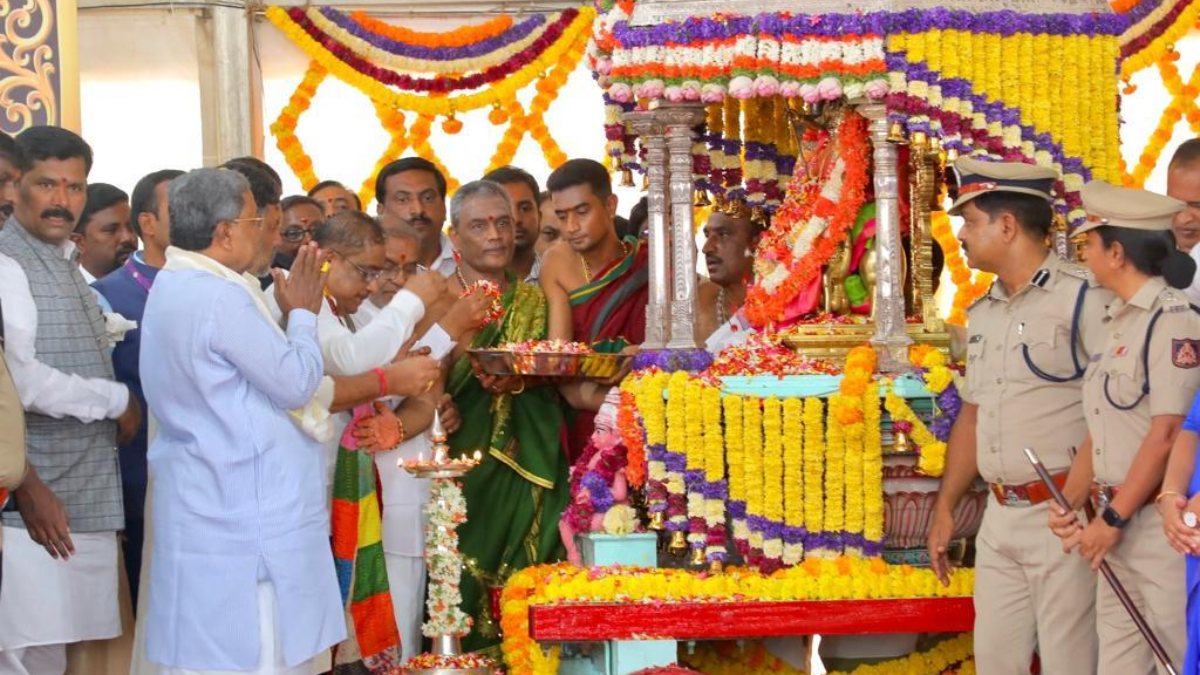 ಹೌದು, ವಿಶ್ವವಿಖ್ಯಾತ ಮೈಸೂರು ದಸರಾ ಮಹೋತ್ಸವಕ್ಕೆ ಸಿಎಂ ಸಿದ್ದರಾಮಯ್ಯ ಇಂದು ಚಾಮುಂಡಿ ಬೆಟ್ಟದಲ್ಲಿ ಚಾಲನೆ ನೀಡಿದರು. ತಾಯಿ ಚಾಮುಂಡೇಶ್ವರಿ ದೇವಿಗೆ ಅಗ್ರಪೂಜೆಯ ಸಲ್ಲಿಸುವ ಮೂಲಕ ಸಾಂಪ್ರದಾಯಿಕವಾಗಿ ಸಿಎಂ ದಸರಾಗೆ ಚಾಲನೆ ನೀಡಿ ಮಾತನಾಡಿದರು. ಬರಗಾಲವಿದ್ದರೂ ನಮ್ಮ ಸಂಪ್ರದಾಯ ಮತ್ತು ವೈಭವಕ್ಕೆ ಕೊರತೆ ಇಲ್ಲದಂತೆ ಅರ್ಥಪೂರ್ಣ ದಸರಾ ಆಚರಿಸಲಾಗುವುದು ಎಂದು ಸಿಎಂ ತಿಳಿಸಿದ್ದಾರೆ.
