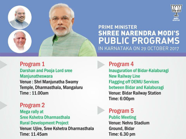 ಕರ್ನಾಟಕದಲ್ಲಿ ನರೇಂದ್ರ ಮೋದಿ, ಕಾರ್ಯಕ್ರಮಗಳು