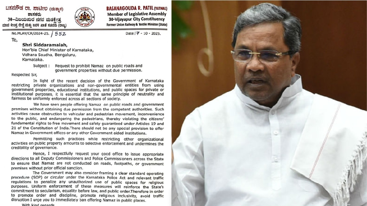 ಕರ್ನಾಟಕದ ಸಾರ್ವಜನಿಕ ಪ್ರದೇಶಗಳಲ್ಲಿ ನಮಾಜ್ ಬೇಡ: ಸಿದ್ದರಾಮಯ್ಯಗೆ ಪತ್ರ