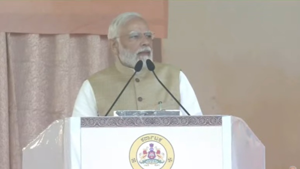 ಬೆಂಗಳೂರಿನಲ್ಲಿ ಸಮಾವೇಶ ಉದ್ದೇಶಿಸಿ ಪ್ರಧಾನಿ ನರೇಂದ್ರ ಮೋದಿ ಮಾತನಾಡುತ್ತಿದ್ದಾರೆ.