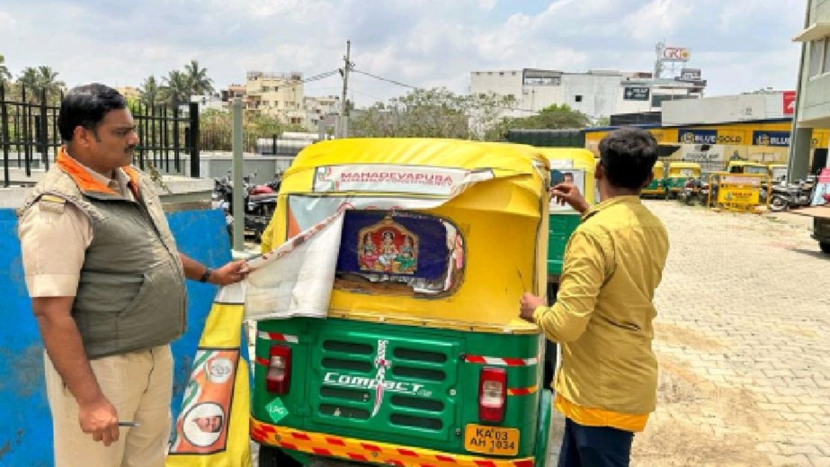 ರಾಜ್ಯದಲ್ಲಿ ಚುನಾವಣಾ ಆಯೋಗದ ಮಾರ್ಗಸೂಚಿಯಂತೆ ಮಾದರಿ ಚುನಾವಣಾ ನೀತಿ ಸಂಹಿತೆ ಜಾರಿಗೆ ಕಟ್ಟುನಿಟ್ಟಿನ ಕ್ರಮ ಕೈಗೊಳ್ಳಲಾಗಿದೆ. ಬೆಂಗಳೂರು ನಗರದಲ್ಲಿ ಆಟೋಗಳ ಹಿಂದೆ ಇರುವ ರಾಜಕೀಯ ನಾಯಕರ ಫೋಟೋ, ಬ್ಯಾನರ್ ತೆರವುಗೊಳಿಸಲಾಗುತ್ತಿದೆ. ಬ್ಯಾನರ್ ಹಾಕಿಕೊಂಡು ಹೋಗುವ ಆಟೋಗಳನ್ನು ಹಿಡಿದು ಚಾಲಕರಿಗೆ ದಂಡ ಹಾಕಲಾಗುತ್ತಿದೆ.