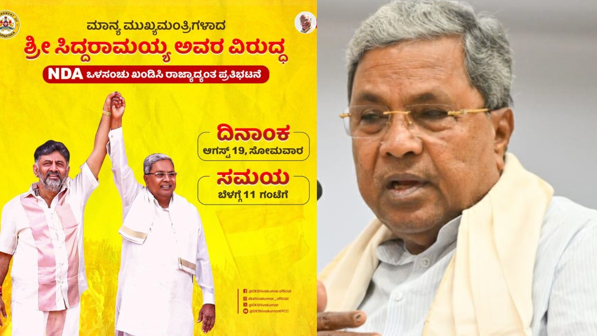 ಮಾನ್ಯ ಮುಖ್ಯಮಂತ್ರಿಗಳಾದ ಶ್ರೀ @Siddaramaiah ಅವರ ವಿರುದ್ಧ NDA ಒಳಸಂಚು ಖಂಡಿಸಿ ಆಗಸ್ಟ್ 19ರ ಸೋಮವಾರದಂದು ಬೆಳಗ್ಗೆ 11 ಗಂಟೆಗೆ ರಾಜ್ಯಾದ್ಯಂತ ಪ್ರತಿಭಟನೆಯನ್ನು ಹಮ್ಮಿಕೊಂಡಿದ್ದು, ಪಕ್ಷದ ಎಲ್ಲಾ ಕಾರ್ಯಕರ್ತರು, ನಾಯಕರು ಈ ಪ್ರತಿಭಟನೆಯಲ್ಲಿ ಪಾಲ್ಗೊಳ್ಳಬೇಕೆಂದು ಮನವಿ ಮಾಡುತ್ತೇನೆ. pic.twitter.com/kSH3kOVwbT