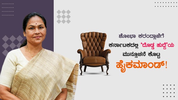ಶೋಭಾ ಕರಂದ್ಲಾಜೆಗೆ ಕರ್ನಾಟಕದಲ್ಲಿ 'ದೊಡ್ಡ ಹುದ್ದೆ'ಯ ಮುನ್ಸೂಚನೆ ಕೊಟ್ಟ ಹೈಕಮಾಂಡ್!