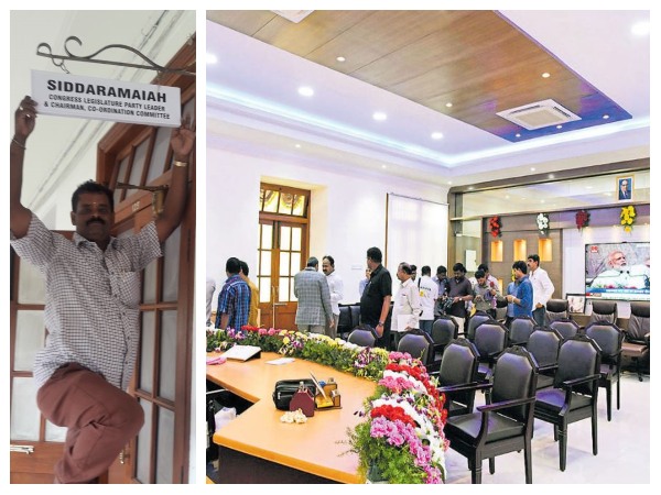 ಸಭಾಧ್ಯಕ್ಷರಾದ ರಮೇಶ್ ಕುಮಾರ್ ತಮ್ಮ ವಿವೇಚನಾ ಅಧಿಕಾರ ಪ್ರಯೋಗಿಸಿ ಈ ಕೊಠಡಿ ನೀಡಿದ್ದು ಅದರ ಮುಂದೆ, "ಸಿದ್ದರಾಮಯ್ಯ, ಕಾಂಗ್ರೆಸ್ ಶಾಸಕಾಂಗ ಪಕ್ಷದ ನಾಯಕರು ಮತ್ತು ಸಮನ್ವಯ ಸಮಿತಿ ಅಧ್ಯಕ್ಷರು" ಎಂಬ ಬೋರ್ಡ್ ತಗುಲಿ ಹಾಕಲಾಗಿದೆ.