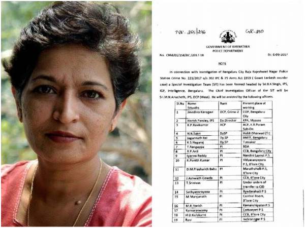 ಬೆಂಗಳೂರು, ಸೆಪ್ಟಂಬರ್ 6: ಪತ್ರಕರ್ತೆ ಗೌರಿ ಲಂಕೇಶ್ ಹತ್ಯೆಯ ತನಿಖೆಗೆ ಕರ್ನಾಟಕ ಸರಕಾರ ವಿಶೇಷ ತನಿಖಾ ತಂಡ (ಎಸ್ಐಟಿ) ರಚನೆ ಮಾಡಿದೆ. ಗುಪ್ತಚರ ವಿಭಾಗದ ಐಜಿಪಿ ಬಿಕೆ ಸಿಂಗ್ ಎಸ್ಐಟಿಯ ನೇತೃತ್ವ ವಹಿಸಲಿದ್ದಾರೆ.