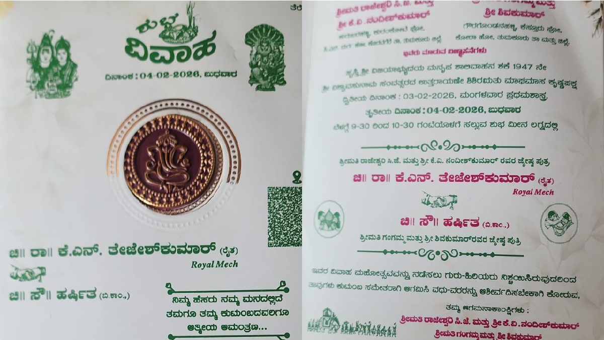 ಕರ್ನಾಟಕದ ತುಮಕೂರು ಜಿಲ್ಲೆಯ ಕೊರಟಗೆರೆ ತಾಲ್ಲೂಕಿನ ಕುರುಬರಹಳ್ಳಿಯ ರೈತ ಕೆ.ಎನ್. ತೇಜೇಶ್ಕುಮಾರ್ ಹಾಗೂ ಹರ್ಷಿತ ಅವರ ವಿವಾಹ ಫೆಬ್ರವರಿ 4ರ ಬುಧವಾರ ನಿಗದಿಯಾಗಿದೆ. ಕೆ.ಎನ್. ತೇಜೇಶ್ಕುಮಾರ್ ಅವರು ತಮ್ಮ ಲಗ್ನ ಪತ್ರಿಕೆಯಲ್ಲಿ ರೈತ / Royal Mech ಎಂದು ಮುದ್ರಿಸಿದ್ದಾರೆ. ರೈತರ ಮಕ್ಕಳಿಗೆ, ರೈತರಿಗೆ ಯಾರೂ ಹೆಣ್ಣು ಕೊಡುವುದಕ್ಕೆ ಮುಂದೆ ಬರುತ್ತಿಲ್ಲ ಎನ್ನುವ ಅಪವಾದಗಳ ನಡುವೆ ಕೆ.ಎನ್. ತೇಜೇಶ್ಕುಮಾರ್ ಅವರು ತಮ್ಮ ಲಗ್ನ ಪತ್ರಿಕೆಯಲ್ಲಿ ಹೆಮ್ಮೆಯ ರೈತ ಎಂದು ಬರೆದುಕೊಂಡಿದ್ದಾರೆ. Oneindia Kannadaದೊಂದಿಗೆ ಮಾತನಾಡಿದ ಕೆ.ಎನ್. ತೇಜೇಶ್ಕುಮಾರ್ ಅವರು, ರೈತರೇ ಹೆಣ್ಣು ಮಕ್ಕಳನ್ನು ಖುಷಿಯಾಗಿ ನೋಡಿಕೊಳ್ಳುವವರು ಎನ್ನುತ್ತಾರೆ.