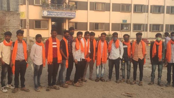 ಸರ್ಕಾರದ ಆದೇಶ ಹೊರತಾಗಿಯೂ ಹಿಜಾಬ್- ಕೇಸರಿ ಶಾಲು ಧರಿಸಿ ಬಂದ ವಿದ್ಯಾರ್ಥಿಗಳು