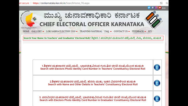 ಕೇಂದ್ರ ಚುನಾವಣಾ ಆಯೋಗದ ಬೆಂಗಳೂರಿನ ಮುಖ್ಯ ಚುನಾವಣಾಧಿಕಾರಿ ಅವರ ಕಚೇರಿಯ ವೆಬ್ಸೈಟ್ನಲ್ಲಿ search your Name in Teacher's and Graduate's Electoral Roll ಶೀರ್ಷಿಕೆಯಲ್ಲಿ ಅಥವಾ ನೇರವಾಗಿ http://ceokarnataka.kar.nic.in/SearchHome_TG.aspx ಈ ಲಿಂಕ್ನಲ್ಲಿ ಮತದಾರರು ಮಾಹಿತಿ ಪಡೆದುಕೊಳ್ಳಬಹುದಾಗಿದೆ.
