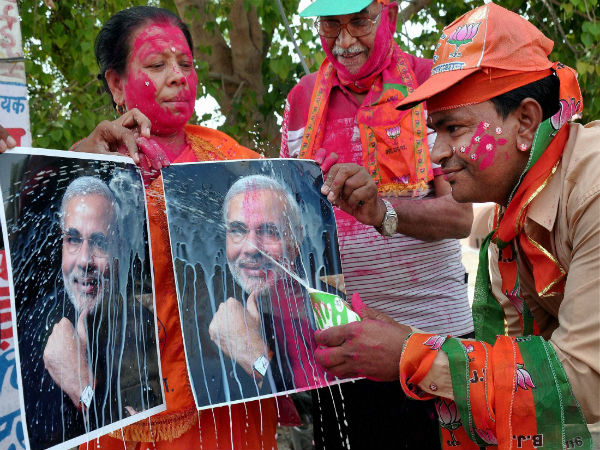 ಬೆಂಗಳೂರು, ಮೇ.16: ಲೋಕಸಭಾ ಚುನಾವಣೆಯಲ್ಲಿ ಬಿಜೆಪಿ ಜಯಗಳಿಸುತ್ತಿದ್ದಂತೆ ಮೋದಿ ಅಭಿಮಾನಿಗಳು ಭರ್ಜರಿಯಾಗಿ ವಿಜಯದ ಸಂಭ್ರಮವನ್ನು ಆಚರಿಸುತ್ತಿದ್ದಾರೆ.