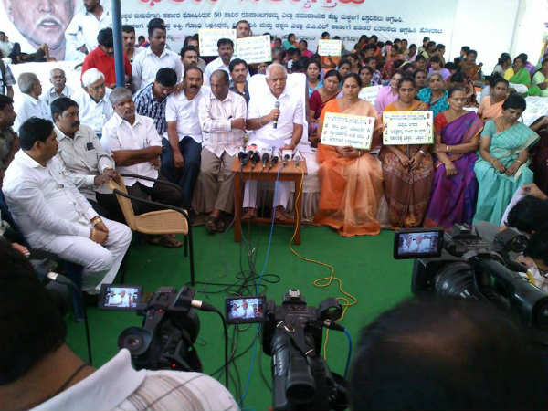 ಸಿಎಂ ಸಿದ್ದರಾಮಯ್ಯ ಶಾದಿಭಾಗ್ಯ ಯೋಜನೆಯನ್ನು ಎಲ್ಲಾ ವರ್ಗಗಳಿಗೆ ವಿಸ್ತರಿಸರಣೆ ಮಾಡಬೇಕು ಹಾಗೂ ಎಪಿಎಲ್ ಕಾರ್ಡ್ದಾರರಿಗೂ ಪಡಿತರ ವಿತರಣೆ ಮಾಡಬೇಕು ಎಂಬ ಬೇಡಿಕೆ ಈಡೇರಿಸುವಂತೆ ಒತ್ತಾಯಿಸಿ ಕೆಜೆಪಿ ಅಧ್ಯಕ್ಷ ಬಿ.ಎಸ್.ಯಡಿಯೂರಪ್ಪ ಅಹೋರಾತ್ರಿ ಧರಣಿ ನಡೆಸುತ್ತಿದ್ದಾರೆ. ಮೊದಲು 8 ದಿನ ಧರಣಿ ನಡೆಸುವುದಾಗಿ ಹೇಳಿದ್ದ ಅವರು ಸದ್ಯ ನ.24ರವರೆಗೆ ವಿಸ್ತರಣೆ ಮಾಡಿದ್ದಾರೆ. (ನ.24ರವರೆಗೆ ಧರಣಿ ವಿಸ್ತರಿಸಿದ ಯಡಿಯೂರಪ್ಪ)