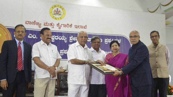 ಬೆಂಗಳೂರು, ಆಗಸ್ಟ್ 6, 2019: ರಾಜ್ಯದಲ್ಲಿ ಕೈಗಾರಿಕಾಭಿವೃದ್ದಿಗೆ ಪೂರಕ ವಾತಾವರಣ ನಿರ್ಮಿಸಲು ರಾಜ್ಯ ಸರಕಾರ ಹಲವಾರು ಕ್ರಮಗಳನ್ನು ಕೈಗೊಂಡಿದೆ ಎಂದು ಮುಖ್ಯಮಂತ್ರಿ ಬಿ ಎಸ್ ಯಡಿಯೂರಪ್ಪ ಹೇಳಿದರು. ಉದ್ಯಮ ಕ್ಷೇತ್ರದಲ್ಲಿ ಅತ್ಯುತ್ತಮ ಸಾಧನೆ ತೋರಿದ ಉದ್ಯಮಗಳಿಗೆ ಮತ್ತು ವ್ಯಕ್ತಿಗಳಿಗೆ ಇಂದು ಮುಖ್ಯಮಂತ್ರಿ ಬಿ.ಎಸ್.ಯಡಿಯೂರಪ್ಪ ಅವರು ಸರ್.ಎಂ.ವಿಶ್ವೇಶ್ವರಯ್ಯ ಶ್ರೇಷ್ಠ ಉತ್ಪಾದನಾ ಪ್ರಶಸ್ತಿಗಳನ್ನು ಮತ್ತು ರಾಜ್ಯ ಶ್ರೇಷ್ಠ ರಫ್ತು ಪ್ರಶಸ್ತಿಗಳನ್ನು ವಿತರಿಸಿ ಗೌರವಿಸಿದರು.