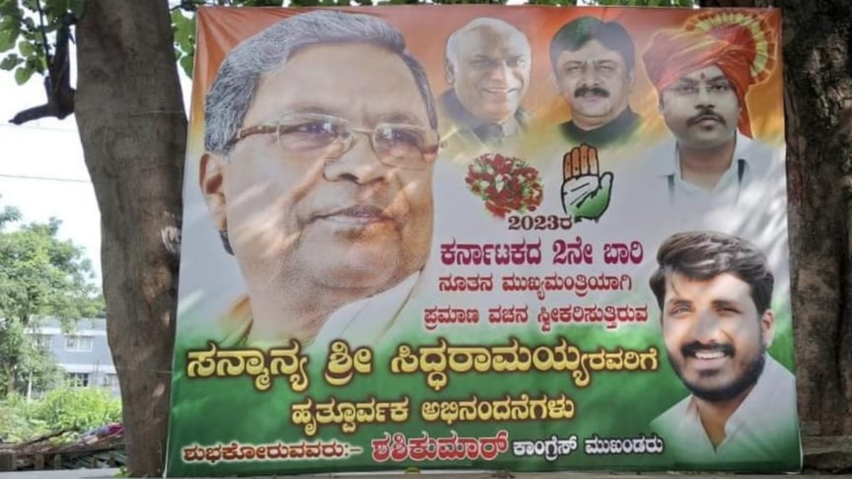 ಕರ್ನಾಟಕ ರಾಜ್ಯದ ಮುಖ್ಯಮಂತ್ರಿಯಾಗಿ 2ನೇ ಬಾರಿ ಪ್ರಮಾಣ ವಚನ ಸ್ವೀಕರಿಸುತ್ತಿರುವ ಸಿದ್ದರಾಮಯ್ಯನವರಿಗೆ ಅಭಿನಂದನೆಗಳು ಎಂದು ಪೋಸ್ಟರ್ ಹಾಕಿದ್ದಾರೆ. ಇನ್ನೂ ಕಾಂಗ್ರೆಸ್ ಶಾಸಕಾಂಗ ಪಕ್ಷದ ಸಭೆಯೇ ನಡೆದಿಲ್ಲ, ಜೊತೆಗೆ ಕಾಂಗ್ರೆಸ್ ಶಾಸಕಾಂಗ ಪಕ್ಷದ ನಾಯಕನ ಆಯ್ಕೆಯೇ ಆಗಿಲ್ಲ. ಈ ನಡುವೆ ಅಭಿಮಾನಿಗಳು ನಮ್ಮ ಮುಂದಿನ ಸಿಎಂ ಸಿದ್ದರಾಮಯ್ಯ ಎಂಬ ಬ್ಯಾನರ್ ಹಾಕಿಕೊಂಡಿದ್ದಾರೆ.