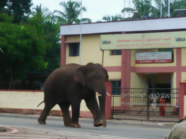 ಹಳಿಯಾಳ, ಜೂನ್ 08: ಕಾಡಿನಲ್ಲಿರಬೇಕಾದ ಕಾಡಾನೆಯೊಂದು ಶುಕ್ರವಾರ ಬೆಳಗಿನ ಜಾವ ಹಳಿಯಾಳ ಪಟ್ಟಣಕ್ಕೆ ಲಗ್ಗೆ ಇಟ್ಟು ಎಲ್ಲರಿಗೂ ಅಚ್ಚರಿ ಮೂಡಿಸಿತು. ಹಾಗೆಯೇ ಭಯದ ವಾತಾವರಣ ಕೂಡ ಸೃಷ್ಟಿಸಿತು.