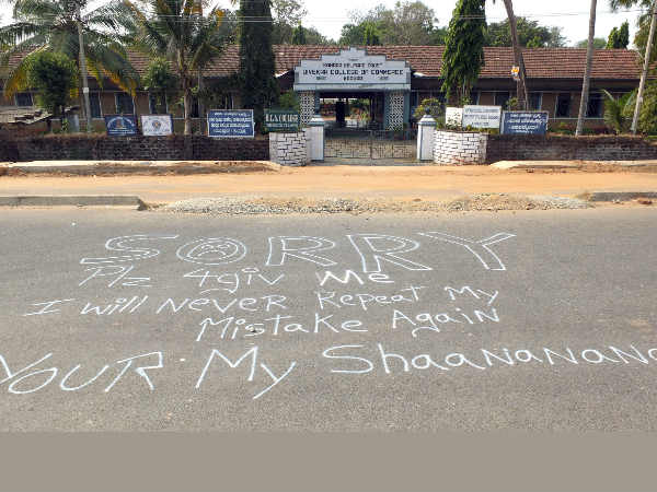 ಯಾವುದೋ ಸಂದರ್ಭದಲ್ಲಿ ಪ್ರೇಮಿಗಳಿಬ್ಬರ ನಡುವೆ ಹುಟ್ಟಿಕೊಂಡಿದ್ದ ತಪ್ಪನ್ನು ಮನ್ನಿಸುವಂತೆ ರಸ್ತೆಯ ಮೇಲೆ ಎಲ್ಲರಿಗೂ ಗೋಚರವಾಗುವಂತೆ ತನ್ನ ಸಂದೇಶವನ್ನು ಬರೆದಿರುವುದು ಇದೀಗ ಕಾಲೇಜಿನ ಪ್ರಾಂಶುಪಾಲರಿಗೆ, ಉಪನ್ಯಾಸಕರಿಗೆ ಮುಜುಗರಕ್ಕೊಳಗಾಗುವಂತೆ ಮಾಡಿದೆ. ಜತೆಗೆ ಕಾಲೇಜಿನ ಇತರ ವಿದ್ಯಾರ್ಥಿಗಳು ಈ ಸಂದೇಶವನ್ನು ಓದಿ, ಮುಖ ಮುಖ ನೋಡಿಕೊಳ್ಳುವಂತೆ ಮಾಡಿದೆ.