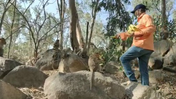 ಅಂತರಗಂಗೆಯಲ್ಲಿ ಬಸವಳಿದ ಮಂಗಗಳಿಗೆ ಆಹಾರ ನೀಡಿದ ಯುವಕರು