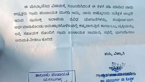 ಸಾಮಾಜಿಕ ಜಾಲತಾಣದಲ್ಲಿ ಈ ಪತ್ರ ವೈರಲ್ ಆಗಿದೆ. ಕೊಪ್ಫಳ ಜಿಲ್ಲೆಯ ಯಲಬುರ್ಗಾ ತಾಲೂಕಿನ ಮುರಡಿ ಗ್ರಾಮ ಪಂಚಾಯಿತಿ ಅಧ್ಯಕ್ಷೆ ಶಾಂತ ಈ ಪತ್ರವನ್ನು ಬರೆದಿದ್ದಾರೆ. ತಾಲೂಕು ಪಂಚಾಯಿತಿ ಕಾರ್ಯ ನಿರ್ವಾಹಕ ಅಧಿಕಾರಿಗಳ ಬಳಿ ಒಪ್ಪಿಗೆ ಕೇಳಿದ್ದಾರೆ.