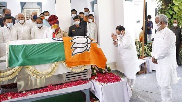 ಕಲ್ಯಾಣ್ ಅಂತಿಮ ನಮನದ ವೇಳೆ ರಾಷ್ಟ್ರ ಧ್ವಜದ ಮೇಲೆ ಬಿಜೆಪಿ ಧ್ವಜ: ತೀವ್ರ ವಿವಾದ ಸೃಷ್ಟಿ