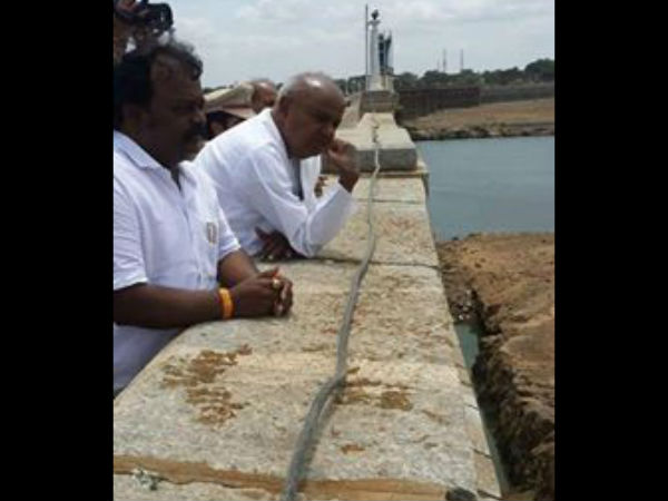ಬೆಂಗಳೂರಿನ ಜಕ್ಕೂರು ವೈಮಾನಿಕ ನೆಲೆಯಿಂದ ಮಂಡ್ಯ ಜಿಲ್ಲೆ ಶ್ರೀರಂಗಪಟ್ಟನ ತಾಲೂಕಿನಲ್ಲಿರುವ ಕೃಷ್ಣರಾಜ ಸಾಗರ ಅಣೆಕಟ್ಟು ಪ್ರದೇಶಕ್ಕೆ ಮಾಜಿ ಪ್ರಧಾನಿ ದೇವೇಗೌಡ ಹಾಗೂ ಅವರ ತಂಡ ಆಗಮಿಸಿದೆ.[ಮಂಡ್ಯ: ರೈತರ ಜತೆ ಕುಳಿತು ಸಿಎಂಗೆ ಪ್ರಶ್ನೆ ಎಸೆದ ಯಡಿಯೂರಪ್ಪ]