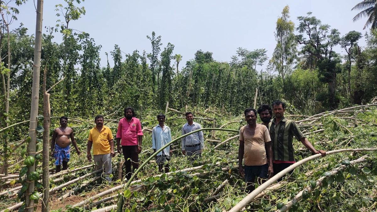 ಭಾರೀ ಬಿರುಗಾಳಿಗೆ ನಲುಗಿದ ವೀಳ್ಯೆದೆಲೆ ತೋಟಕ್ಕೆ ಆಸರೆಯಾಗಿದ್ದ ಮರಗಿಡಗಳು ಮುರಿದುಬಿದ್ದು ಅಪಾರ ಪ್ರಮಾಣದ ನಷ್ಟವುಂಟಾಗಿದೆ. ಗ್ರಾಮದ ನೂರಾರು ಮಂದಿ ರೈತರು, ವೀಳ್ಯೆದೆಲೆ ಬೇಸಾಯವನ್ನೇ ನಂಬಿ ಜೀವನ ಸಾಗಿಸುತ್ತಿದ್ದರು. ಎಲೆ ಕಟಾವು ಹಂತಕ್ಕೆ ಬರಲು ಸುಮಾರು 2 ವರ್ಷಗಳ ಅವಧಿ ಬೇಕಾಗುತ್ತದೆ. ಫಸಲಿಗೆ ಬಂದಿದ್ದ ತೋಟ ನಾಶವಾಗಿರುವ ಹಿನ್ನೆಲೆಯಲ್ಲಿ ಪ್ರತಿ ರೈತನಿಗೆ ಲಕ್ಷಾಂತರ ರೂ. ನಷ್ಟ ಉಂಟಾಗಿದ್ದು, ತಲೆ ಮೇಲೆ ಕೈ ಹೊತ್ತು ಕೂರುವ ಪರಿಸ್ಥಿತಿ ನಿರ್ಮಾಣವಾಗಿದೆ.