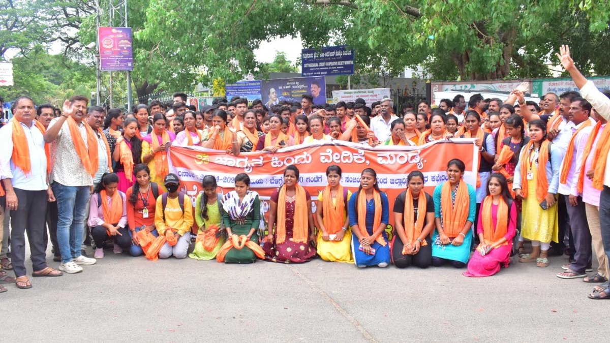 ಹುಬ್ಬಳ್ಳಿಯಲ್ಲಿ ವಿದ್ಯಾರ್ಥಿನಿ ನೇಹಾ ಹಿರೇಮಠ್ ಎಂಬ ಯುವತಿಯನ್ನ ಹತ್ಯೆ ಮಾಡಿದ ಆರೋಪಿಗೆ ಗಲ್ಲು ಶಿಕ್ಷೆ ವಿಧಿಸುವಂತೆ ಒತ್ತಾಯಿಸಿ ಎಬಿವಿಪಿ ಸೇರಿದಂತೆ ಹಿಂದೂ ಸಂಘಟನೆಗಳ ಕಾರ್ಯಕರ್ತರು ಮಂಡ್ಯ ನಗರದಲ್ಲಿ ಪ್ರತಿಭಟನಾ ಮೆರವಣಿಗೆ ನಡೆಸಿದರು.