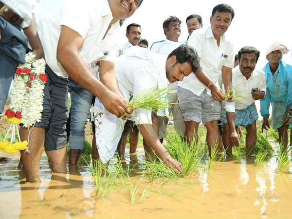 ಪಕ್ಕಾ ರೈತನ ರೀತಿ, ಪಂಚೆಯನ್ನು ಎತ್ತಿ ಕಟ್ಟಿ, ತಲೆಗೆ ಟವೆಲ್ ಸುತ್ತಿ, ಭತ್ತ ನಾಟಿದ ನಿಖಿಲ್ ಕುಮಾರಸ್ವಾಮಿ, ಕೆಲ ಸಮಯ ರೈತರ ಜೊತೆ ಮಾತನಾಡಿದರು.