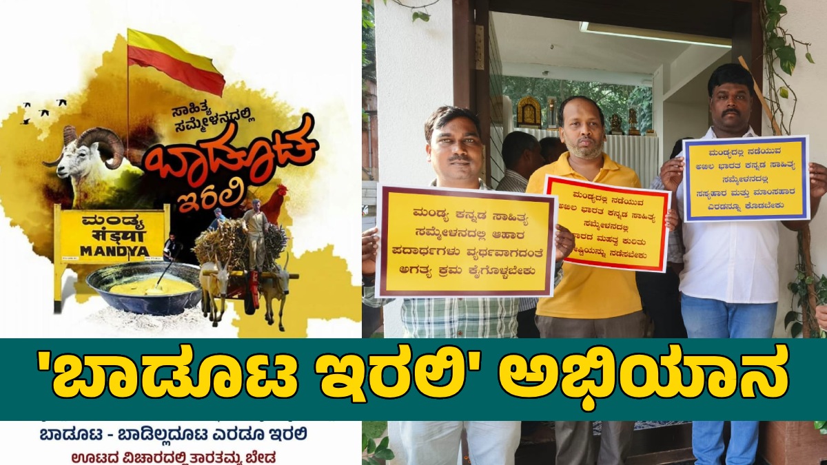 ಡಿಸೆಂಬರ್ 20ರಿಂದ ಮೂರು ದಿನಗಳ ಕಾಲ ಈ ಬಾರಿ ಸಾಹಿತ್ಯ ಸಮ್ಮೇಳನ ನಡೆಯಲಿದೆ. ಸಮ್ಮೇಳನಕ್ಕೆ ಬರುವವರಿಗೆ ಊಟದ ವಿಚಾರದಲ್ಲಿ ತಾರತಮ್ಯ ಆಗಬಾರದು, ಬಾಡೂಟ - ಬಾಡಿಲ್ಲದೂಟ ಎರಡೂ ಇರಲಿ ಎಂದು ಕೆಲವು ಒತ್ತಾಯಿಸಿದ್ದಾರೆ. ಮಂಡ್ಯ ಜನತೆ ಸೋಷಿಯಲ್ ಮೀಡಿಯಾದಲ್ಲಿ ಬೃಹತ್ ಅಭಿಯಾನ ಆರಂಭಿಸಿದ್ದು, ಇದಕ್ಕೆ ಸಾಕಷ್ಟು ಬೆಂಬಲ ಕೂಡ ವ್ಯಕ್ತವಾಗುತ್ತಿದೆ.