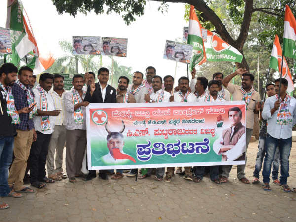 ಗಣಿ ಅಧಿಕಾರಿಗೆ ಬೆದರಿಕೆ ಹಾಕಿದ ಸಂಸದ ಪುಟ್ಟರಾಜು ವಿರುದ್ಧ ಪ್ರತಿಭಟನೆ