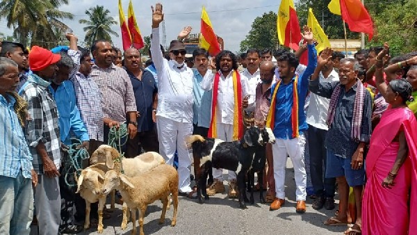 ಕುರಿ-ಮೇಕೆಗಳ ಜೊತೆಗೆ ಕಾರ್ಯಕರ್ತರೊಂದಿಗೆ ಕೇಂದ್ರ ಸರ್ಕಾರದ ವಿರುದ್ಧ ಘೋಷಣೆ ಕೂಗಿ ಹೆದ್ದಾರಿಯಲ್ಲಿ ವಿನೂತನ ಪ್ರತಿಭಟನೆ ನಡೆಸಿದರು. ಪ್ರತಿಭಟನೆಯಿಂದಾಗಿ ಬೆಂಗಳೂರು-ಮೈಸೂರು ಹೆದ್ದಾರಿಯಲ್ಲಿ ಸುಮಾರು ಅರ್ಧ ಗಂಟೆಗೂ ಹೆಚ್ಚು ಕಾಲ ವಾಹನ ಸಂಚಾರಕ್ಕೆ ಅಡ್ಡಿಯುಂಟಾಗಿತ್ತು.