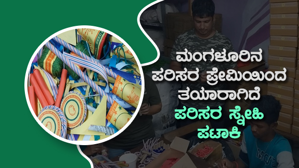ಮಂಗಳೂರು, ಅಕ್ಟೋಬರ್ 13: ದೀಪಗಳ ಹಬ್ಬ ದೀಪಾವಳಿಗೆ ದಿನಗಣನೆ ಆರಂಭವಾಗಿದೆ. ಪ್ರತಿವರ್ಷದಂತೆ ಈ ಬಾರಿಯೂ ದೀಪಾವಳಿಗೆ ಪಟಾಕಿಗಳ ಅಬ್ಬರ ಜೋರಾಗಲಿದೆ. ಈಗಾಗಲೇ ಮಾರುಕಟ್ಟೆಗೆ ತರಹೇವಾರಿ ಪಟಾಕಿಗಳು ಲಗ್ಗೆ ಇಡುತ್ತಿದೆ. ಜನರು ಪಟಾಕಿ ಖರೀದಿಗೆ ಸಿದ್ಧವಾಗುತ್ತಿದ್ದಂತೆಯೇ ಕಂಪೆನಿಗಳೂ ವಿನೂತನ ಪ್ರಯೋಗವನ್ನು ಪಟಾಕಿಯಲ್ಲಿ ಮಾಡಿದೆ. ಆದರೆ ಮಂಗಳೂರಿನ ಪರಿಸರ ಪ್ರೇಮಿಯೊಬ್ಬರು ಪರಿಸರ ಸ್ನೇಹಿ ಪಟಾಕಿಯನ್ನು ತಯಾರಿಸಿ ಎಲ್ಲರ ಗಮನಸೆಳೆದಿದ್ದಾರೆ.