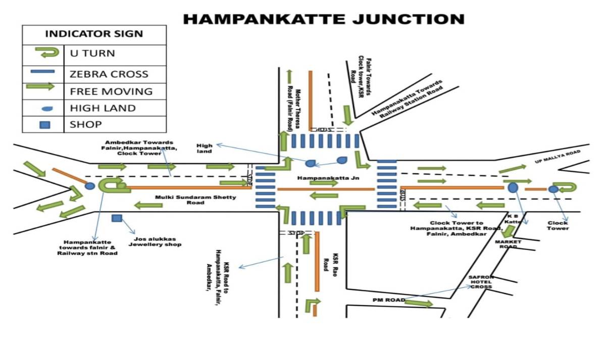 1. ಕ್ಲಾಕ್ ಟವರ್ ಕಡೆಯಿಂದ ಫಳ್ನೀರ್ ಕಡೆಗೆ ಹೋಗುವ ಎಲ್ಲಾ ವಾಹನಗಳು ಇನ್ಮುಂದೆ ಹಂಪನಕಟ್ಟ ಸರ್ಕಲ್ನಲ್ಲಿ ನೇರವಾಗಿ ಮೂಲ್ಕಿ ಸುಂದರ್ರಾಮ್ ಶೆಟ್ಟಿ ರಸ್ತೆಯಲ್ಲಿ ಚಲಿಸಿ, ಹಾಗೆಯೇ ಜೋಸ್ ಅಲುಕಾಸ್ ಮುಂಭಾಗ ಯೂ ಟರ್ನ್ ಮಾಡಿಕೊಂಡು ಹೋಗಬೇಕಾಗುತ್ತದೆ. ಅಲ್ಲಿಂದ ವಾಪಾಸು ಹಂಪನಕಟ್ಟ ಜಂಕ್ಷನ್ಗೆ ಬಂದು ಎಡಕ್ಕೆ ತಿರುಗಿ ಫಳ್ನೀರ್ ರಸ್ತೆ ಕಡೆಗೆ ಸಂಚರಿಸಬಹುದಾಗಿದೆ.