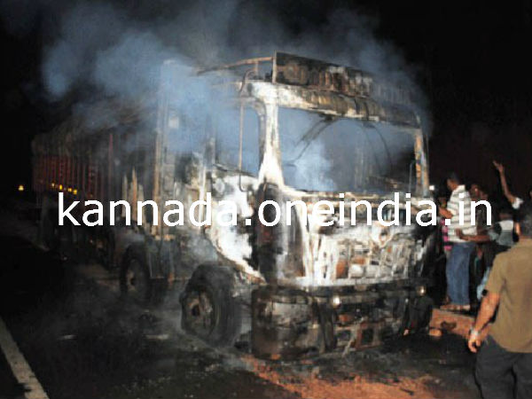ಗೊಂದಲ ಮೂಡಿಸಿದ ಲಾರಿ : ಬೆಂಕಿ ಹೊತ್ತಿ ಉರಿಯುತ್ತಿದ್ದ ಲಾರಿ ಮುಂಭಾಗದಿಂದ ಗ್ಯಾಸ್ ಟ್ಯಾಂಕರ್ ರೀತಿ ಕಾಣುತ್ತಿತ್ತು. ಅದನ್ನು ಸರಿಯಾಗಿ ಗುರುತಿಸಿದ ಜನರು ಗಾಬರಿಯಿಂದ ರಾಷ್ಟ್ರೀಯ ಹೆದ್ದಾರಿಯಲ್ಲಿ ವಾಹನಗಳನ್ನು ನಿಲ್ಲಿಸಿಕೊಂಡಿದ್ದರಿಂದ ಕೆಲಕಾಲ ಸಂಚಾರ ದಟ್ಟಣೆ ಉಂಟಾಗತ್ತು.