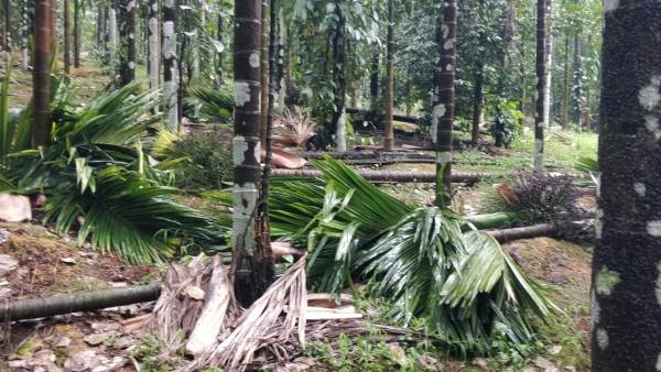 ಬಂಗಾಳಕೊಲ್ಲಿಯಲ್ಲಿ ಉಂಟಾದ ವಾಯುಭಾರ ಕುಸಿತದಿಂದಾಗಿ ಶುಕ್ರವಾರ ಮತ್ತು ಶನಿವಾರ ಜಿಲ್ಲೆಯ ಹಲವೆಡೆ ಭಾರೀ ಗಾಳಿ, ಮಳೆ ಸುರಿದಿದೆ. ಶನಿವಾರ ಸಂಜೆ ಸುರಿದ ಭಾರೀ ಮಳೆಗೆ ಸುಳ್ಯ ತಾಲೂಕಿನ ಕಲ್ಮಕಾರು, ಬಾಳುಗೋಡು, ಹರಿಹರ ಭಾಗದಲ್ಲಿ ಅಪಾರ ನಷ್ಟವಾಗಿದೆ. ಗಾಳಿಗೆ ಸುಮರು 150ಕ್ಕೂ ಅಧಿಕ ಅಡಿಕೆ ಮರಗಳು ಧರೆಗುರುಳಿದೆ.