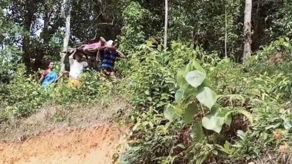 ವಿಡಿಯೋ: ತಾಯಿಯನ್ನು ಬೆಂಚ್ಗೆ ಕಟ್ಟಿ ಆಸ್ಪತ್ರೆಗೆ ಸಾಗಿಸಿದ ತಂದೆ- ಮಗ: ರಸ್ತೆಯಿಲ್ಲದೇ ಪ್ರಾಣಬಿಟ್ಟ ಮಹಿಳೆ