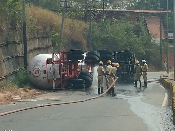 ಮಂಗಳೂರು ರಾಷ್ಟ್ರೀಯ ಹೆದ್ದಾರಿ ಬಳಿ ಗ್ಯಾಸ್ ಟ್ಯಾಂಕರ್ ಪಲ್ಟಿ , ರಸ್ತೆ ಬಂದ್