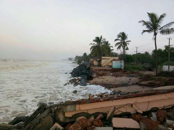 'ಓಖಿ' ಚಂಡಮಾರುತದ ಪ್ರಭಾವ ಮಂಗಳೂರಿನ ಕಡಲ ತೀರದಲ್ಲಿ ಕಂಡುಬರುತ್ತಿದೆ. ಶನಿವಾರ ಸಂಜೆಯಿಂದ ಕಡಲ್ಕೊರೆತ ಆರಂಭವಾಗಿದೆ.