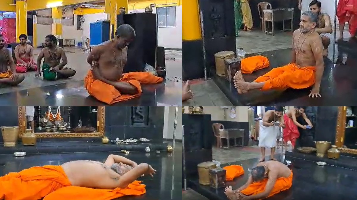 ಚೆನ್ನೈನ ಮಠದಲ್ಲಿನ ದೇವರ ಗರ್ಭಗುಡಿಯ ಮುಂಭಾಗ ಪೇಜಾವರ ಶ್ರೀಗಳು ವಿವಿಧ ಯೋಗಾಸನದ ಭಂಗಿಗಳ ಪ್ರದರ್ಶನ ಮಾಡಿದ್ದಾರೆ. ಈ ವೇಳೆ ಶ್ರೀಗಳೊಂದಿಗೆ ಮಠದ ಶಿಷ್ಯರು ಕೂಡ ಯೋಗಾಸನವನ್ನು ಮಾಡಿದ್ದಾರೆ.