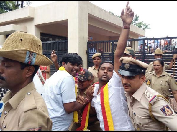 ಪರೀಕ್ಷೆ ಬರೆಯಲು ಪರೀಕ್ಷಾ ಕೇಂದ್ರಕ್ಕೆ ಆಗಮಿಸಿದ ಅನ್ಯ ರಾಜ್ಯದ ವಿದ್ಯಾರ್ಥಿಗಳಿಗೆ ಕರ್ನಾಟಕ ರಕ್ಷಣಾ ವೇದಿಕೆ ಕಾರ್ಯಕರ್ತರು ತಡೆಯೊಡ್ಡಲು ಯತ್ನಿಸಿದರು. ಪರೀಕ್ಷಾ ಕೇಂದ್ರಕ್ಕೆ ನುಗ್ಗಲು ಯತ್ನಿಸಿದ ಕರವೇ ಕಾರ್ಯಕರ್ತರನ್ನು ಪೊಲೀಸರು ಬಂಧಿಸಿದರು .