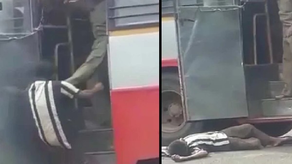 ಪ್ರಯಾಣಿಕನಿಗೆ ಕಾಲಿನಿಂದ ಒದ್ದು ರಸ್ತೆಗೆ ತಳ್ಳಿದ ನಿರ್ವಾಹಕ. pic.twitter.com/qhpUhNohSM