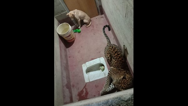 ವೈರಲ್ ಫೋಟೋ; ಶೌಚಾಲಯದಲ್ಲಿ ಬಂಧಿಯಾದ ಚಿರತೆ, ನಾಯಿ!
