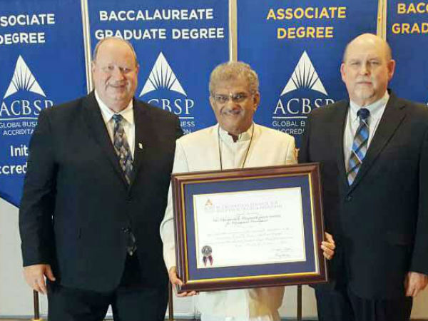 ಸೋಮವಾರ ಅಮೆರಿಕಾದ ಲಾಸ್ ಏಂಜಲೀಸ್ನ ಅನಹೆಮ್ ನಗರದಲ್ಲಿ ನಡೆದ ವಿಶೇಷ ಸಮಾರಂಭದಲ್ಲಿ ಸಂಸ್ಥೆಯ ಅಧ್ಯಕ್ಷ ಡಾ ಡಿ. ವೀರೇಂದ್ರ ಹೆಗ್ಗಡೆ ಅವರು ಸಂಸ್ಥೆಯ ನಿರ್ದೇಶಕ ಡಾ ಎನ್. ಆರ್. ಪರಶುರಾಮನ್ ರೊಂದಿಗೆ, ಚೀಫ್ ಅಕ್ರೆಡಿಟೇಷನ್ ಆಫೀಸರ್ ಡಾ. ಸ್ಟೀವ್ ಪಾರ್ಸ್ಕೆಲ್ ಹಾಗೂ ಬೋರ್ಡ್ ಆಫ್ ಕಮಿಷನರ್ನ್ ನ ಅಧ್ಯಕ್ಷ ಡಾ. ರೇ ಎಲ್ಡ್ರಿಡ್ಜ್ ಅವರಿಂದ ಮಾನ್ಯತೆಯ ಪ್ರಶಸ್ತಿ ಸ್ವೀಕರಿಸಿದರು.